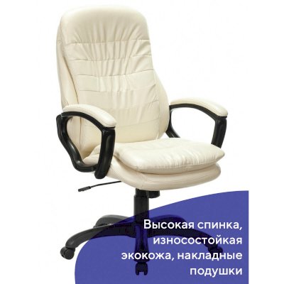 Конструкция кресла отвечает всем нормам современной эргономики: высокая спинка, упругая набивка и подлокотники с мягкими накладками. Всё это обеспечит необходимым комфортом пользователя.