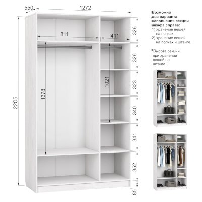 Наполнение шкафа штанга / зеркало