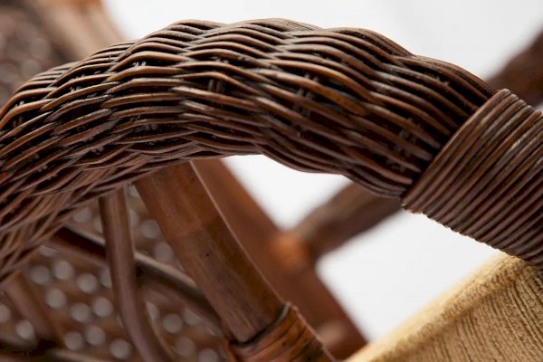 Материал: каркас - ротанг (высший сорт), мягкие элементы - ткань (хлопок+полиэстр) + наполнитель (холлофайбер), столешница - закалённое стекло