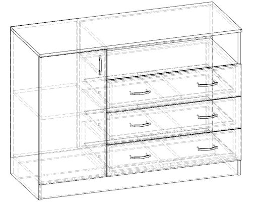 • Корпус, полки и фасады изготовлены из ЛДСП 16 мм с кромкой ПВХ 0,4 мм.