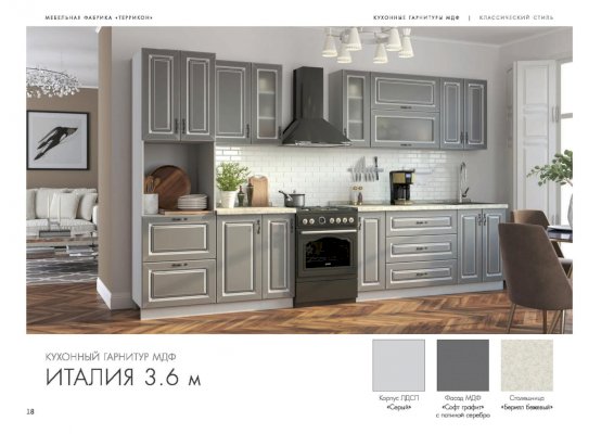 Модульный кухонный гарнитур Италия софт графит с патиной серебро (Террикон) - за 83 298 руб. в Улан-Удэ. Купите на сайте mebelmarket-ulan-ude.ru или по телефону 8(800)505-30-63 уже сегодня! Уточнить наличие, комплектацию, актуальную цену можно бесплатно у менеджера ежедневно. Закажите Модульный кухонный гарнитур Италия софт графит с патиной серебро (Террикон) до конца акции! Доступна покупка в кредит, рассрочку. Доставим со склада или на заказ.