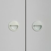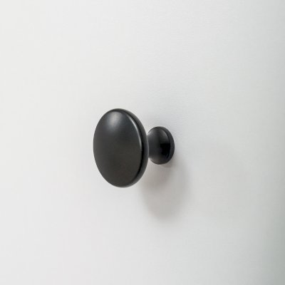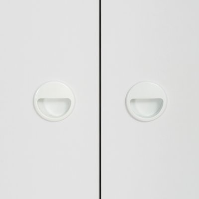 Ручки: Черная пластиковая кнопка на фасадах выдвижных ящиков/Белая пластиковая врезная ручка на распашных фасадах
