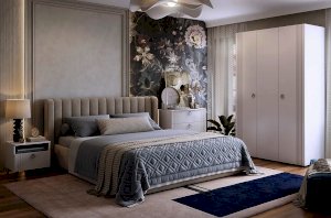Комплектация: Кровать, прикроватная тумба, трехстворчатый шкаф, комод