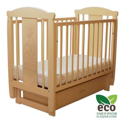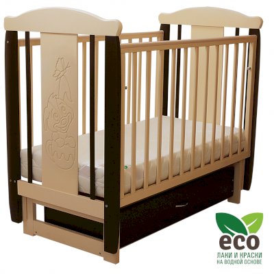 Кроватка "Соня 04" имеет механизм качания поперечный маятник. Механизм качания фиксируется. Возможен вариант с ящиком.