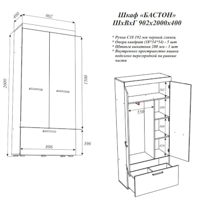 Шкаф Бастон (Эра) - за 12 440 руб. в Улан-Удэ. Купите на сайте mebelmarket-ulan-ude.ru или по телефону 8(800)505-30-63 уже сегодня! Уточнить наличие, комплектацию, актуальную цену можно бесплатно у менеджера ежедневно. Закажите Шкаф Бастон (Эра) до конца акции! Доступна покупка в кредит, рассрочку. Доставим со склада или на заказ.