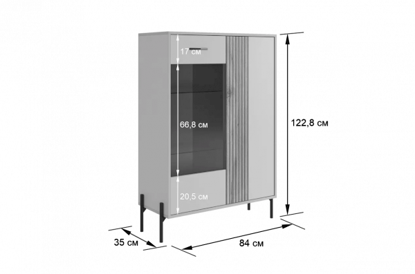 Комод "Доминика" (со стеклом) – это воплощение элегантности и функциональности. Широкий и высокий, он предлагает обширное пространство для хранения, при этом украшая ваш интерьер своим стильным дизайном.