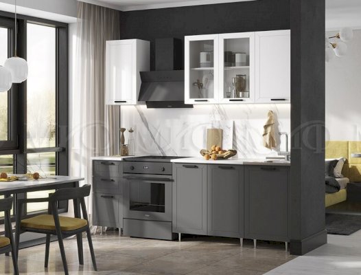 Модульная кухня Монако Белый снег софт/Графит софт (Миф)
