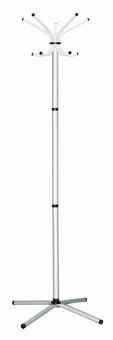 Вешалка напольная стойка, для верхней одежды выполнена из оцинкованной стали с полимерным покрытием цвета под алюминий. Данная модель вешалки идеально вписывается в интерьер современного кабинета.