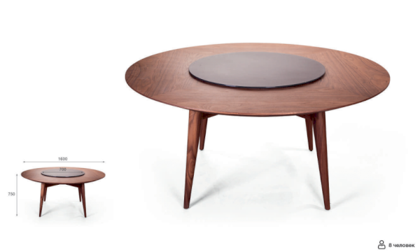 Каким должен быть стол для большой компании? Конечно, в первую очередь — просторным. Однако иногда в таких случаях возникает проблема: если нужное вам блюдо стоит далеко, тянуться через весь стол неудобно. Top Concept предлагает вашему вниманию стол Wilson, который с лёгкостью решает эту проблему. Его секрет — вращающийся центр! Благодаря ему даже большая компания из 6-8 человек сможет комфортно разместиться и приятно проводить время за этим столом.