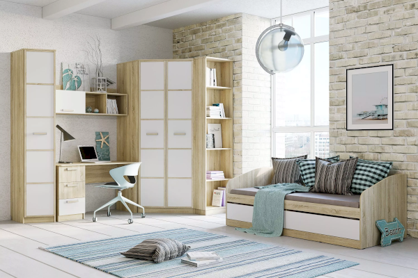 Полка НМ 011.38-01 М1 органично дополнит рабочее место в детской. Закрытая секция модуля подойдет для хранения книг. Газлифты максимально высоко поднимают фасад вверх, обеспечивая большую площадь обзора содержимого. Предметы декора будут хорошо смотреться в открытых секциях полки.