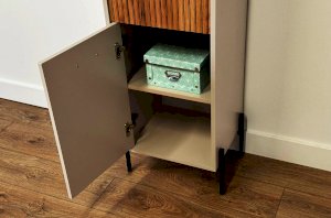 Стеллаж оснащен комбинацией открытых и закрытых полок, что позволяет вам гибко управлять пространством. Открытые полки идеально подходят для демонстрации декоративных предметов или книг, в то время как закрытые полки обеспечивают скрытое пространство для хранения.