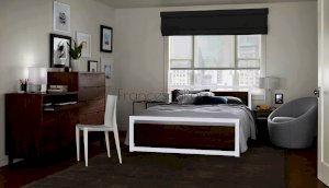 Благодаря отсутствию сплошного полотна изголовья и основания и его замены на горизонтальные перекладины модель выглядит изящно и совершенно не громоздко, благодаря чему может гармонично дополнить любой интерьер в современной стилистике.