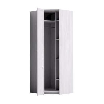 Угловой высокий шкаф использует рационально самую сложную площадь в комнате - угол. Он комплектуется внутренним стеллажом с регулируемыми по высоте полками и стационарной штангой для верхней одежды. Длина штанги 817 мм, что позволит свободно развесить более 10 плечиков с зимним гардеробом. Беспроводной светодиодный светильник поможет сориентироваться и быстро найти необходимое. Он включается только при открытой двери. Легкая установка светильника на магнитное крепление - не требует сверления, прокладывания провода, подключения к сети.