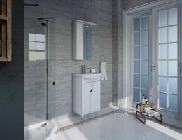 Корпус из влагостойкой ЛДСП и фасады из высококачественной МДФ покрыты белой глянцевой краской ультрафиолетового отверждения.