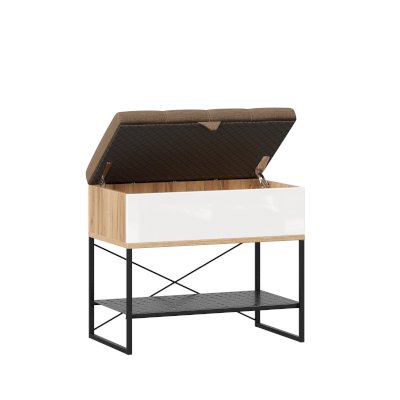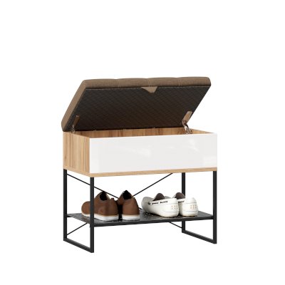 • Крышка (сиденье) откидывается на кронштейнах, под сиденьем короб высотой 150 мм для хранения