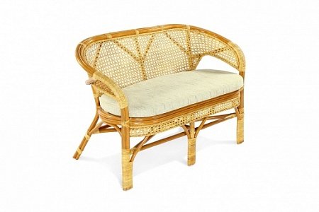 Двухместный диван из ротанга с подушкой.