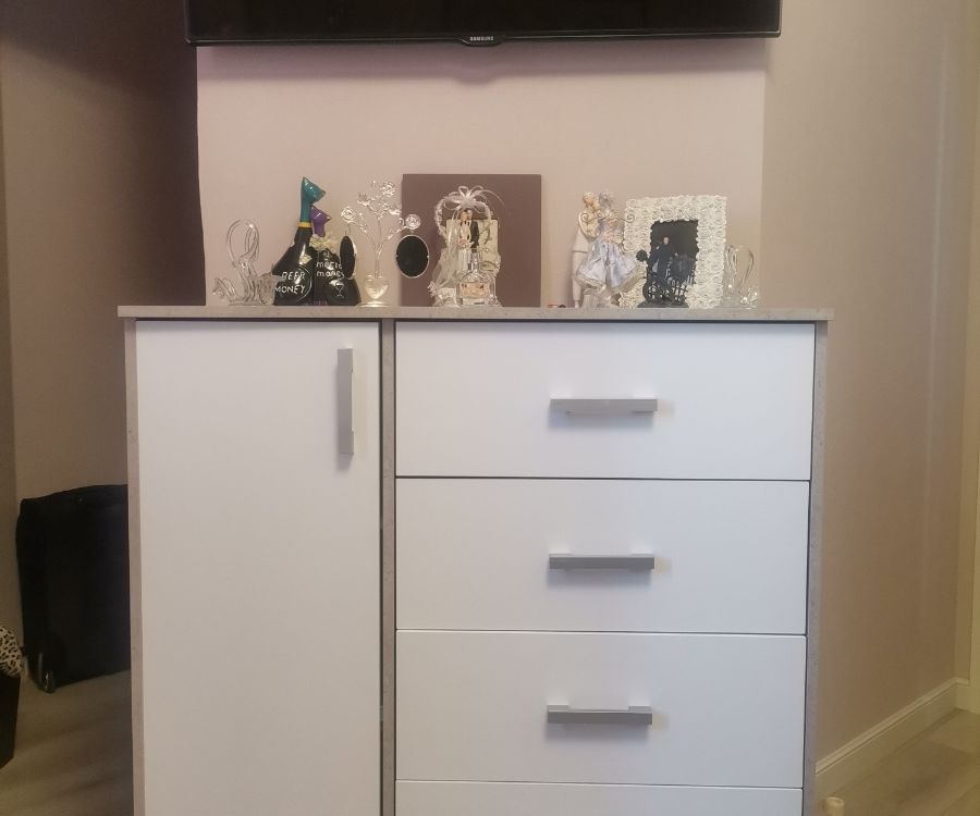 Выбирали комод по фото. Даже не ожидали, что комод окажется настолько качественным и красивым! Все детали без дефектов и сколов, что очень порадовало! Достаточно крепкая фурнитура, крепкие салазки. Приятно, что продавец очень внимательный и положил даже наклейки для того, чтобы закрыть место крепления! Однозначно рекомендую к покупке! Теперь хотим угловой шкаф и тумбу из этой же серии мебели, чтобы собрать комплект.