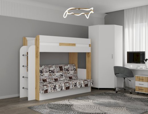 Кровать двухъярусная с диваном. Уникальное решение для детской или подростковой комнаты. Диван на пружинном блоке, в собранном виде, только закрепить. Механизм - Книжка.