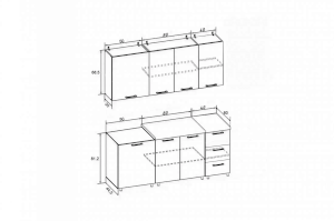 Высота нижних шкафов, мм 812