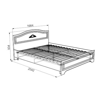 Кровать оснащена ортопедическим основанием, которое обеспечит здоровый и крепкий сон. Спинки кровати украшены объемным декоративным элементом и фрезеровкой с патиной. Матрас приобретается отдельно.