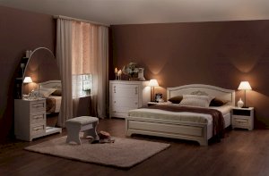 Спальный гарнитур выполнен в цвете белый/джелато софт, который располагает к спокойствию и уюту.