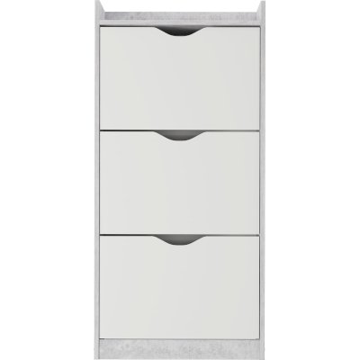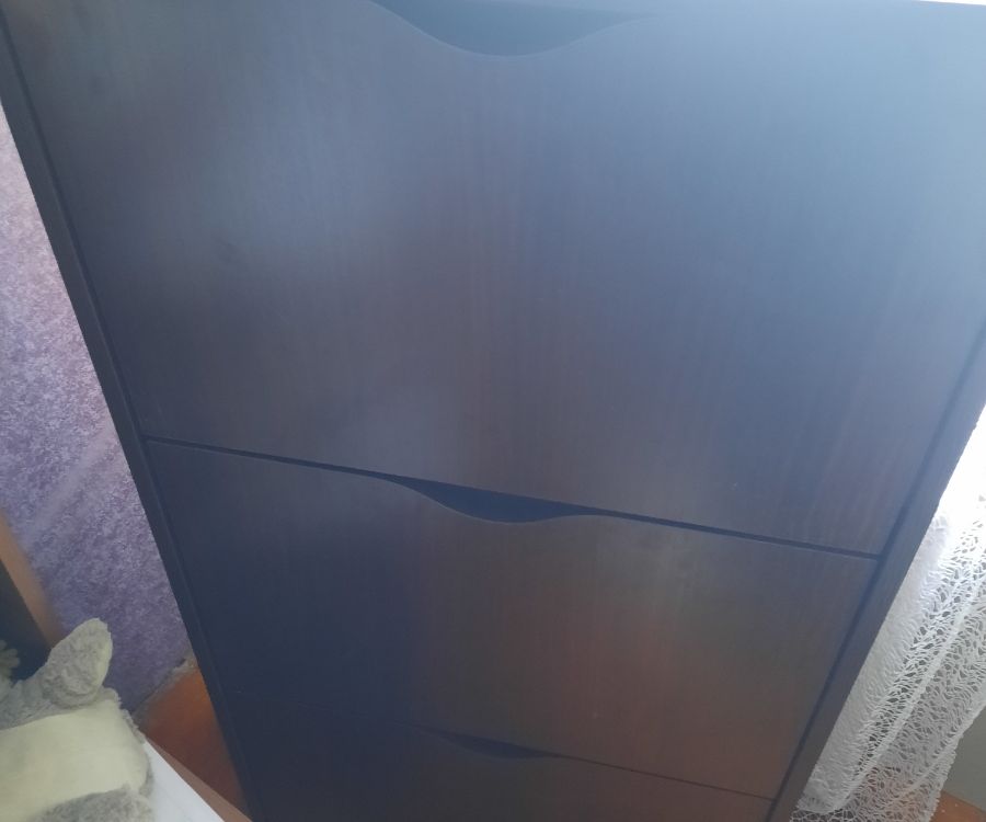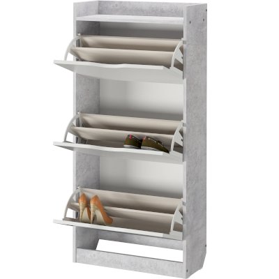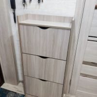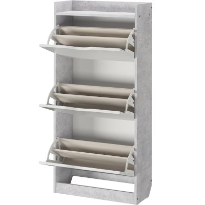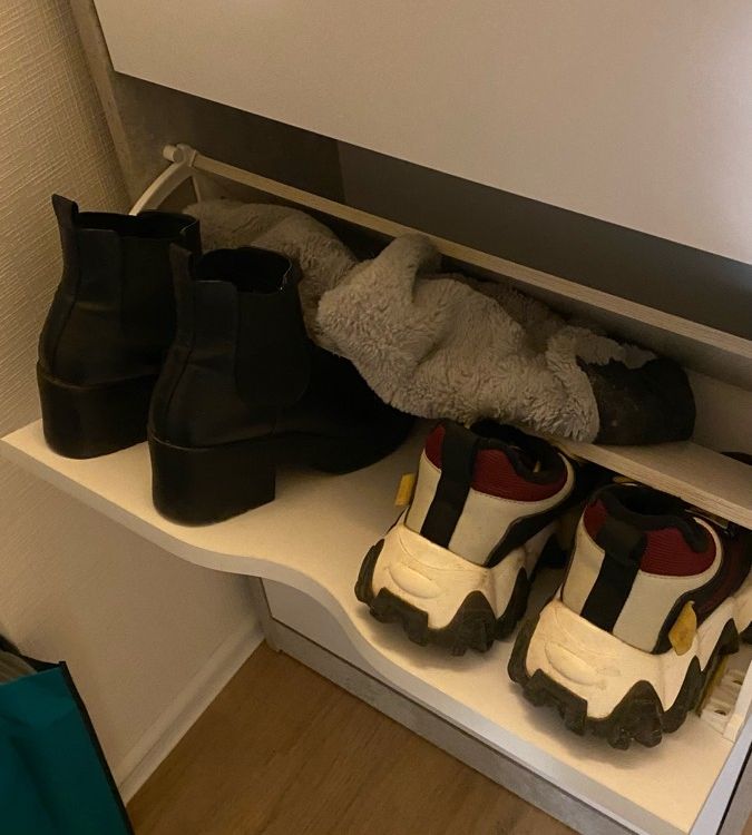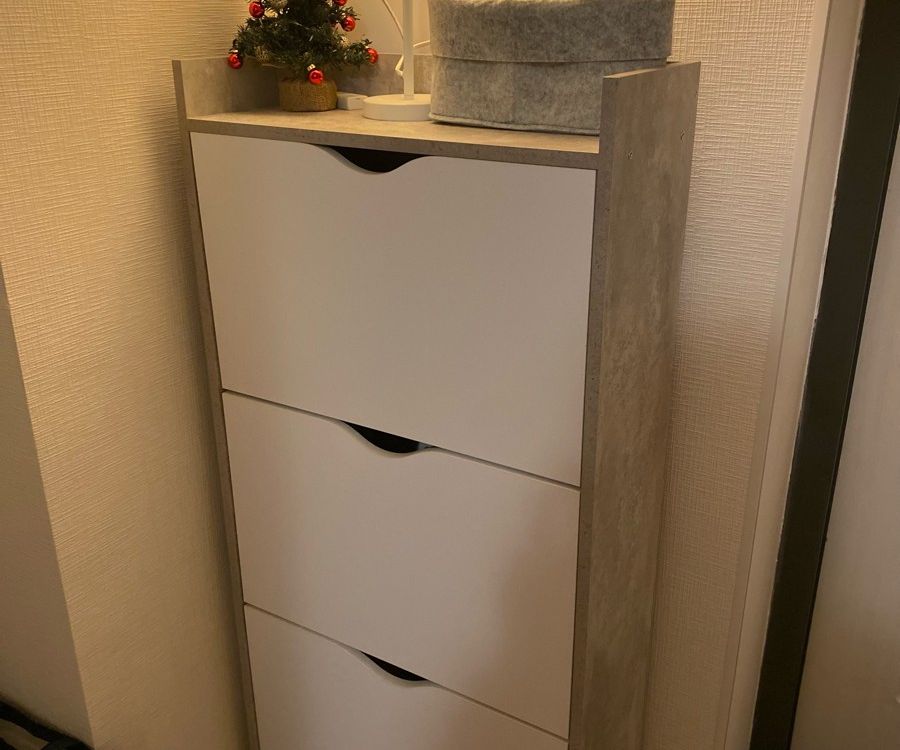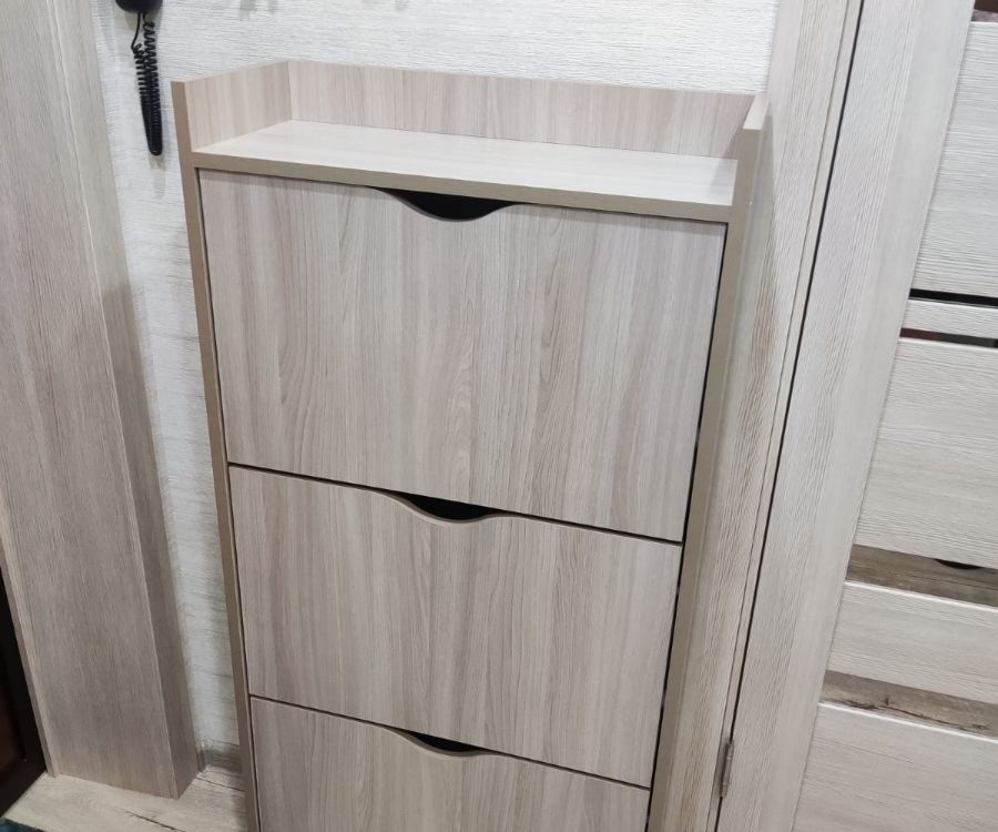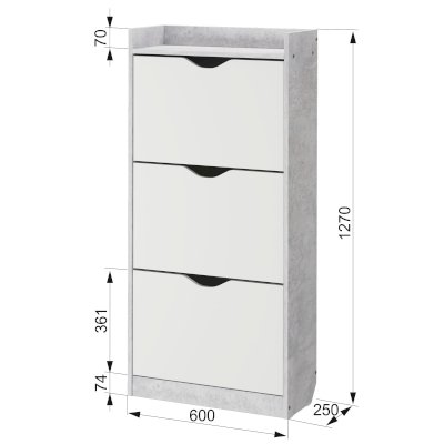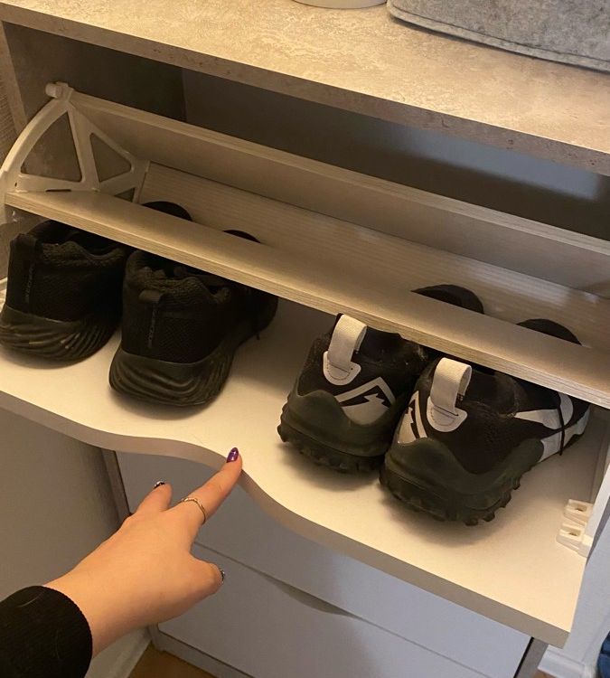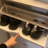 Обалденная обувница! Качество отличное! Самое главное цвет бетона хороший. Сами белые ящики без какой-либо текстуры, просто гладкие. Сборка, в принципе, лёгкая, но немного был недочёт, что нужно крепить внутренние деревяшки. И ещё не хватило запасных шурупов, так как их вообще не было. Все остальное очень хорошее. В ящики с разделением помещается не крупная обувь, а вот с крупной уже немного туго, приходится немного мять. Зимние ботинки мужа помещаются вообще только в ящик без разделения, но это не критично. Балку можно зафиксировать шурупами или просто так вставить. Очень довольна качеством!