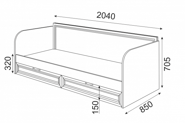 • Кровать имеет 2 выдвижных ящика.
