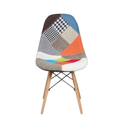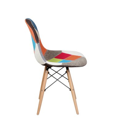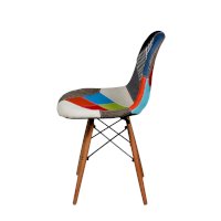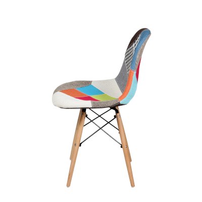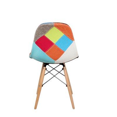Сиденье и спинка обшиты тканью из лоскутов в стиле пэчворк (лоскутное шитьё).